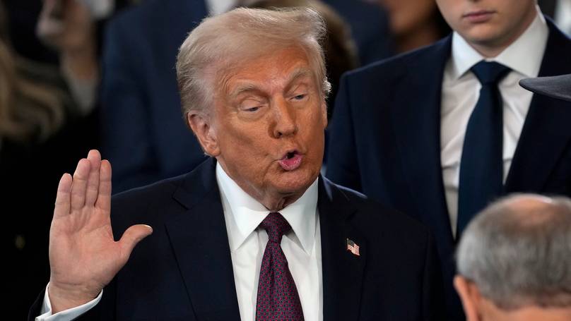 Trump took the oath inside rather than outside for thousands of people to watch due to bleak weather conditions that have gripped the north east of the USA, with temperatures well below zero degrees Celsius.