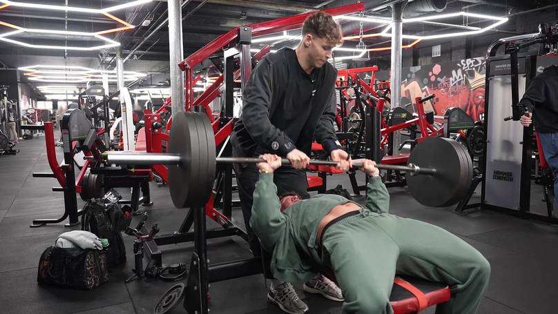 Tristan Barnes had been at the gym preparing for a bench press when he said ‘let’s try not to tear a f**king pec off the bone or some s**t’.