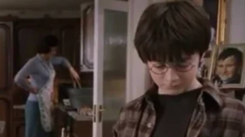 In the original 2001 film The Philosopher’s Stone, the abusive aunt can be seen in the kitchen when Harry receives his first of many letters from Hogwarts, inviting him to start his magical education away from the dreadful Dursley’s.