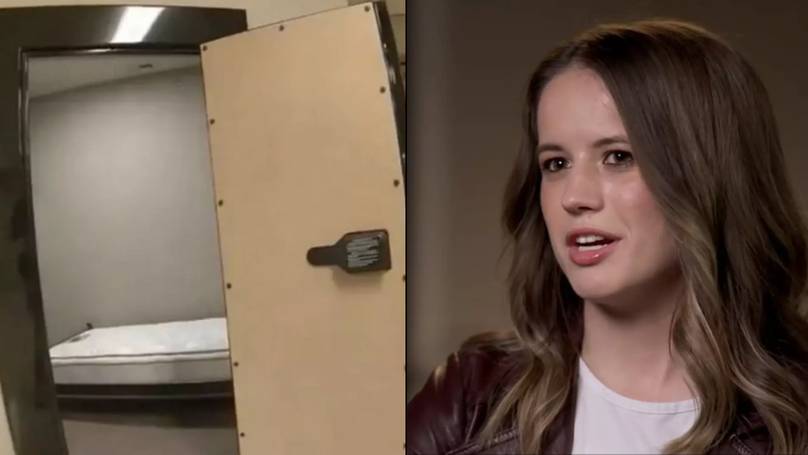 Haunting police footage shows the ‘panic room’ a YouTube mum used as her daughter speaks out on abuse.