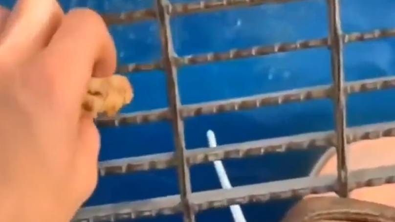 The identity of the snack he sent down to the fishes also sparked much debate online, as although it appeared to be some sort of flapjack, others reckoned it could have been a cookie or a chicken nugget.