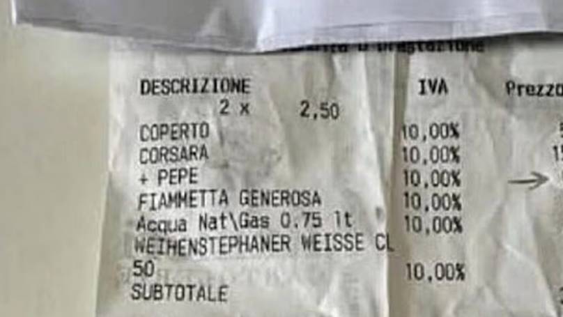 An Italian diner was left furious when spotting the ‘crazy’ extra charge that was added to their bill.