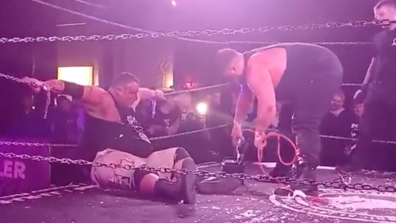 People have been left stunned after watching a wrestler electrocute his own dad during a brutal ‘death match’.