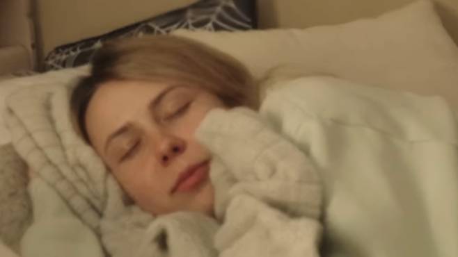 The video shows her feigning sleep and appearing to have ‘nightmares’ about each of these scenarios, before jolting awake each time and realising it’s all a dream.