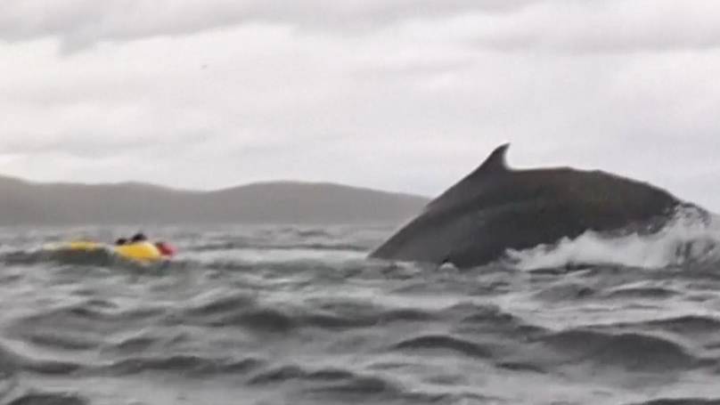 The pair ultimately called time on their expedition due to the bad weather – however, the run in with the humpback whale hasn’t scared the father and son off kayaking.