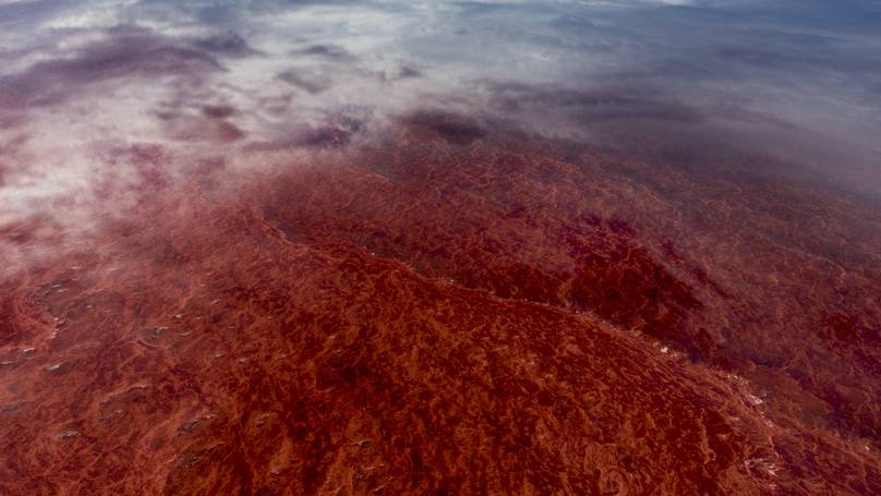 There’s no way you’re going to want to take a dip in this body of water, which is known as Lake Natron and is located in northern Tanzania.